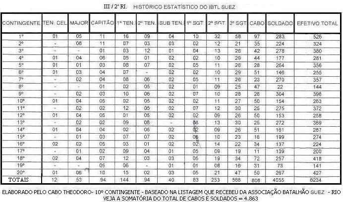 1.Informações sobre os integrantes que vieram a falecer em Suez: |
