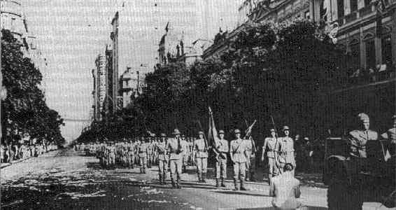 pela Avenida Rio Branco a 1ª Divisão de Infantaria Expedicionária